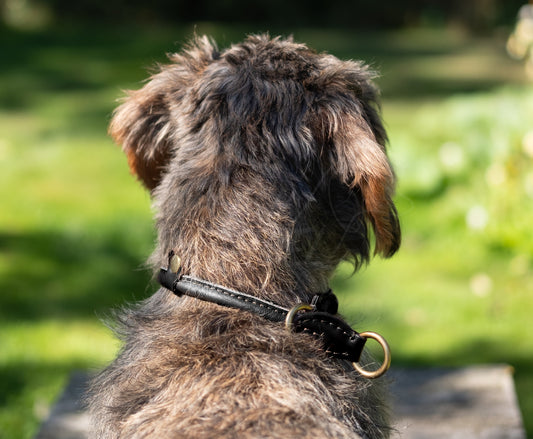ADJUSTABLE COLLAR | ROUND-STITCHED LEATHER | BLACK BRASS