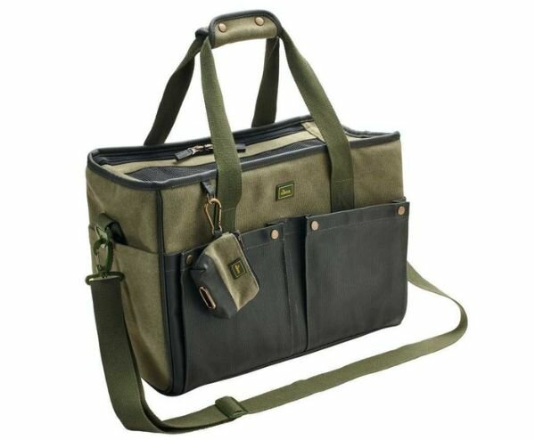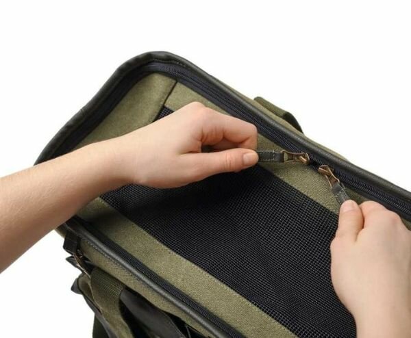 This sturdy outdoor Dachshund carrier bag is made of canvas (cotton), giving it a rugged, outdoor look and feel. The army green color also complements almost any other clothing style. You can carry the bag in your hand, over your shoulder, or cross-body. This distributes the weight more evenly across your shoulders and back. Inside, the Dachshund carrier bag features a secure strap to keep your Dachshund from falling out. The top zippered compartment can be fully zipped shut for a secure nest for your Dachshund, or left open for a view. This compartment is designed for extra fresh air and allows you to stay in touch with your Dachshund. The bag also has an extra pocket with a poop bag inside, which you can also use for snacks or treats. On the outside, you'll find all sorts of handy pockets for your wallet, (foldable) water bowl , water bottle, and more.