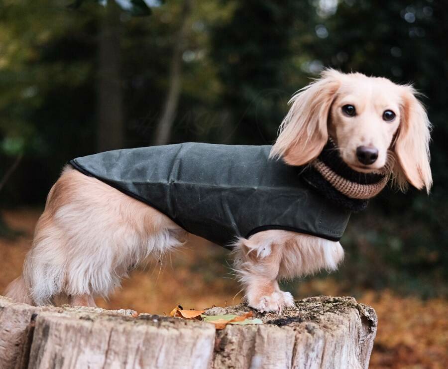 Whether you have a wire-haired, long-haired, or short-haired Dachshund, this wax jacket for your Dachshund offers excellent protection against moisture. For wire-haired Dachshunds with a thick undercoat, this is the ideal spring and autumn jacket, and sometimes even sufficient for winter. For Dachshunds that get cold easily, such as short-haired Dachshunds, you can combine this jacket with an additional single-layer coat, such as theBurberry or Tartan fleece jacket or woolen mid-layer . This wax jacket has only a cotton inner layer, making it lightweight and comfortable while also keeping rain out—a nice combination of style and functionality, but some Dachshunds need a little more warmth.