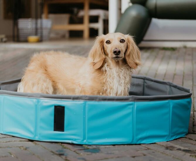 We've been searching for the perfect Dachshund pool for a while, and this foldable Dachshund pool is perfect for our long-backed friends! Why? Because its 70cm diameter makes it a suitable size for all sizes of Dachshunds: from rabbits to large standard sized dogs. The pool is also foldable, which not only makes it easy to store, but also allows the edge to be flexible. This way, your Dachshund can even get into the pool on their own. It's ideal for a nice soak (they can simply stand up) or toss in some fun toys or treats during the heat. The perfect way to cool off on a hot summer day! And: tested by us, it's ideal for all Dachshunds.