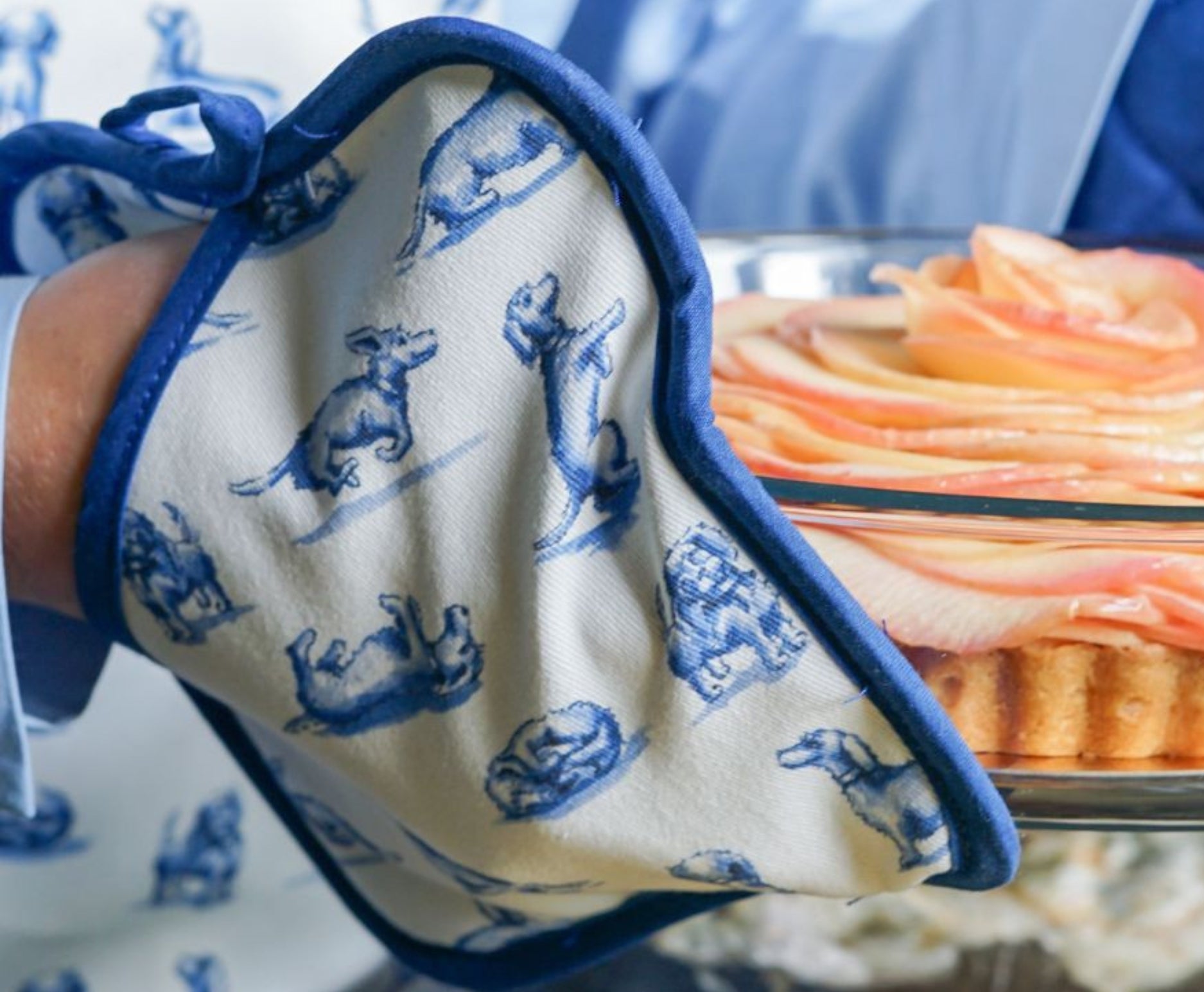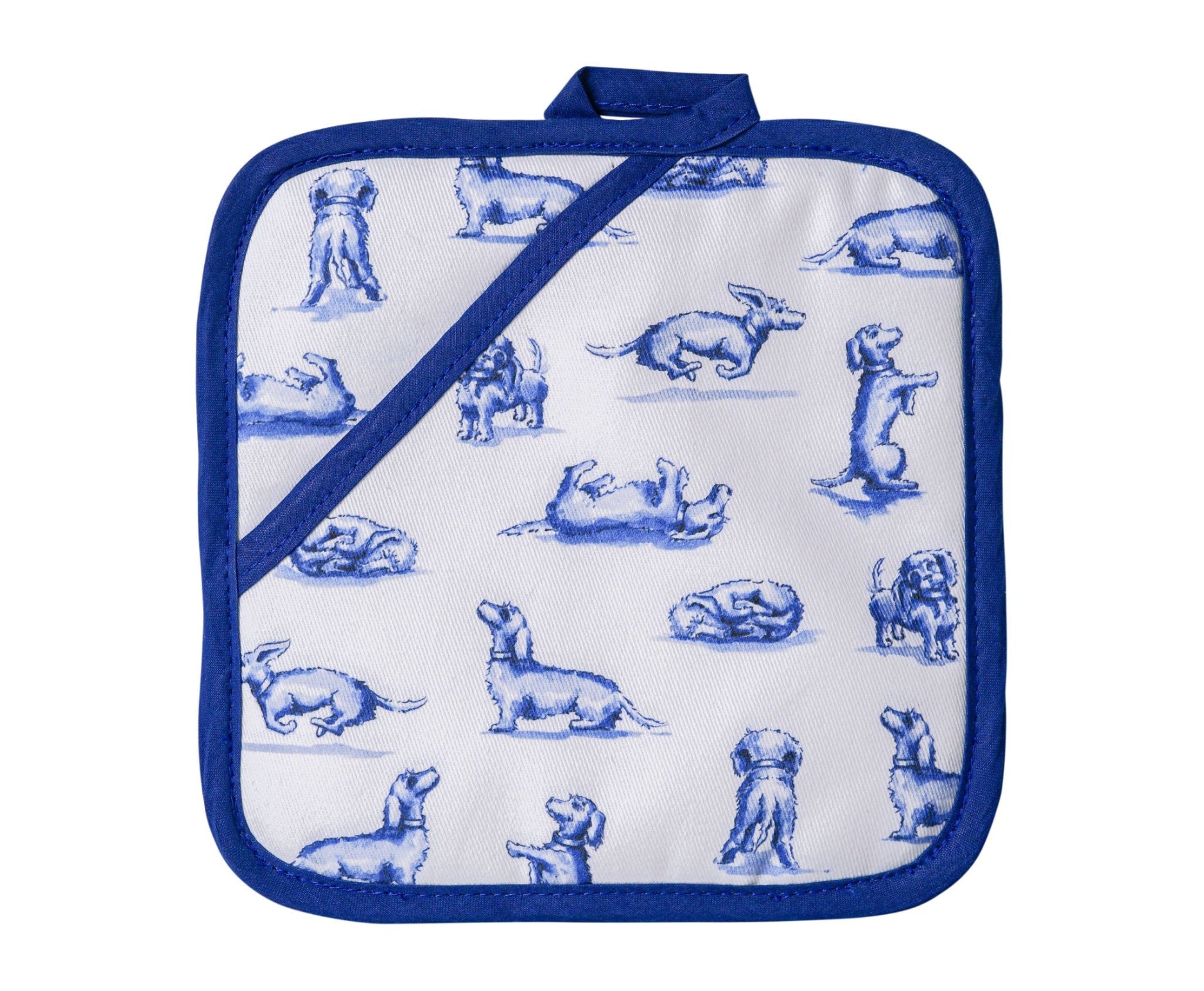 De dikke Teckel pannenlap is onderdeel van de collectie van Janny van der Heijden x Heinen Delftsblauw. Een prachtig cadeau voor elke Teckelliefhebber of iedereen die van unieke keukenaccessoires houdt.