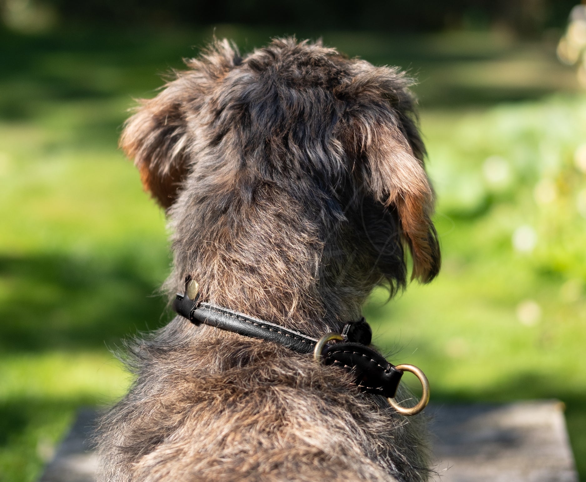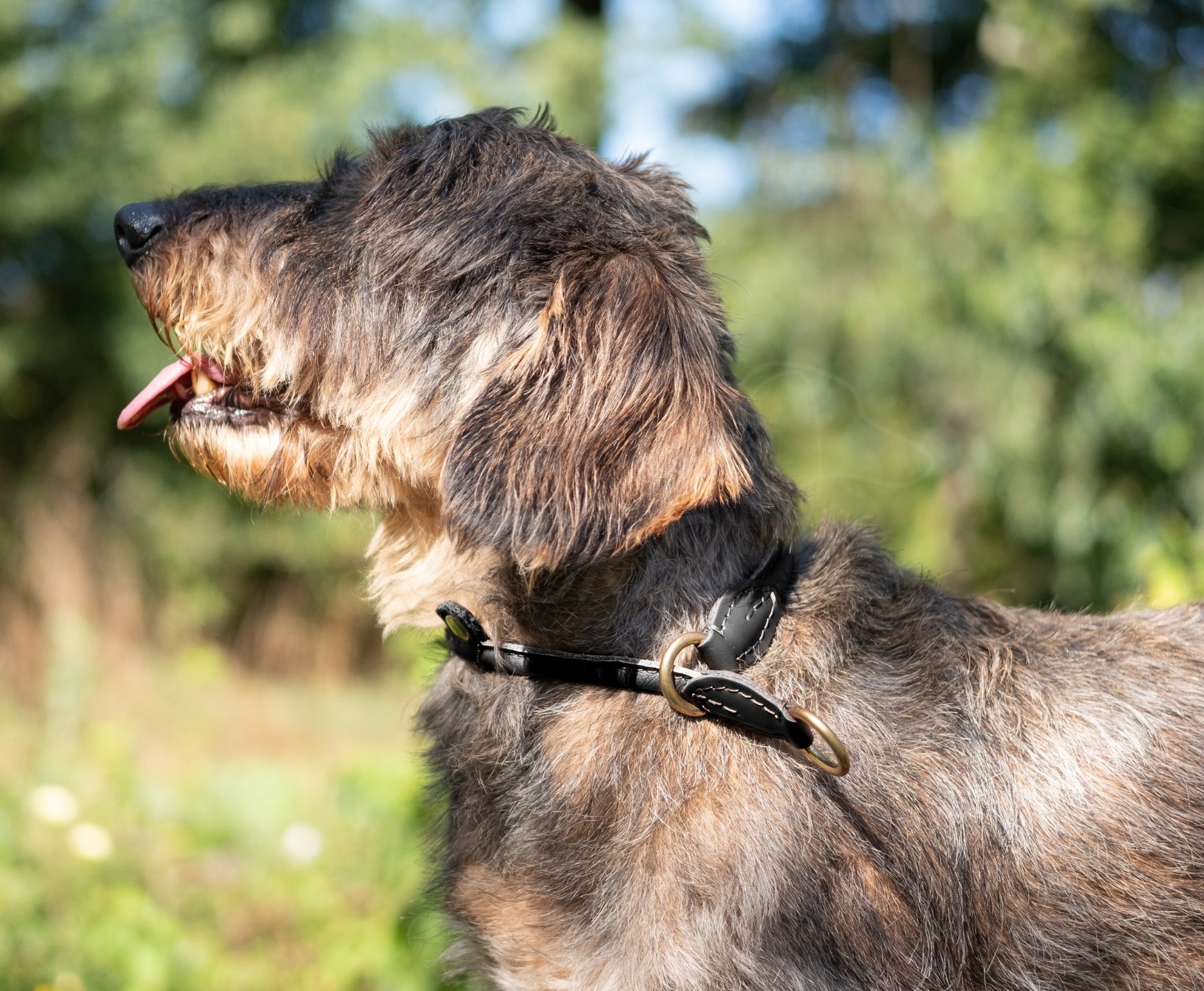 VERSTELBARE HALSBAND | RONDGENAAID LEER | ZWART MESSING