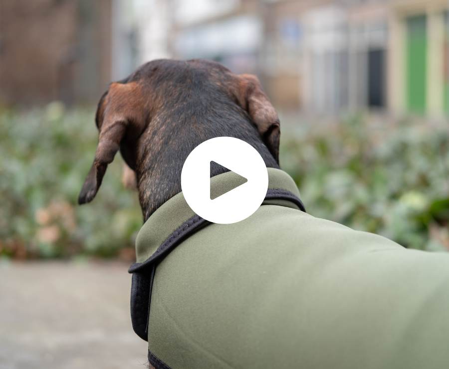 Zoals al onze Teckel jassen wordt ook deze neopreen regenjas met de hand gemaakt in ons atelier in Italië. Geen massaproductie, maar zorgvuldig vakwerk. Na jarenlang samen ontwikkelen hebben we de perfecte ‘Teckel fit’ gecreëerd: extra lengte over de rug, een royale buikflap die zowel de longen als het grootste deel van de buik beschermt, en verstelbaar klittenband op borst en buik zodat de jas makkelijk aan te trekken is en perfect aansluit. Zodra je de juiste maat hebt gekozen aan de hand van onderstaand meetadvies, kun je deze jas dus aanpassen met het klittenband naar het lijf van jouw Teckel. Bekijk de video hieronder om te zien hoe je dat doet.